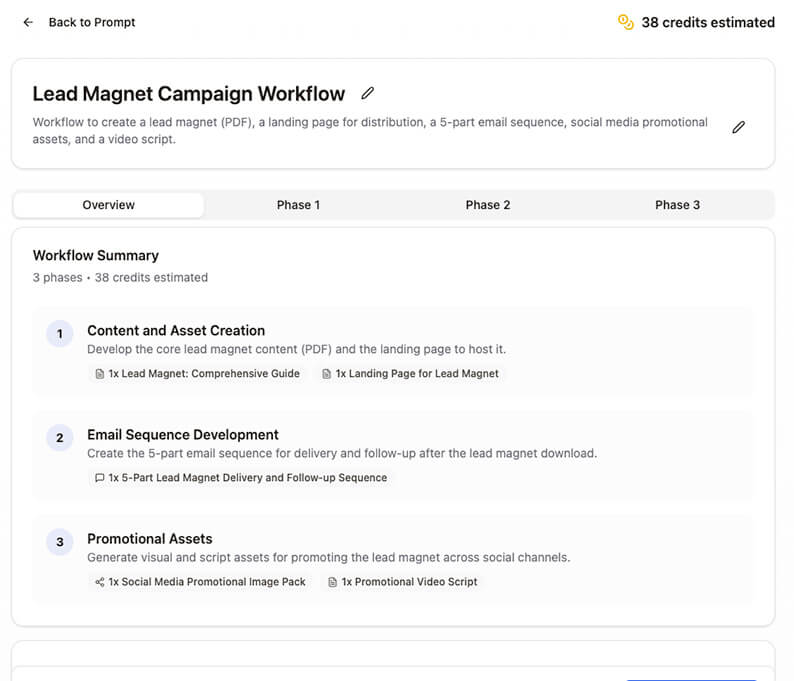 Launch kits, lead magnets, promo packs, repurposing flows, research flows, and more.